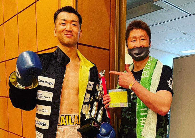津崎善郎(左)と、現ラジャダムナン王者でもある所属ジムの石毛会長
