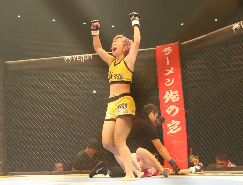 しなしさとこにTKO勝利し喜ぶにっせー、今回は古瀬に勝って再起なるか