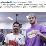 パッキャオ(左)のライバル、メイウェザーと戦ったローガンポールがパッキャオの練習を視察(パッキャオのyoutubeサムネイルより)