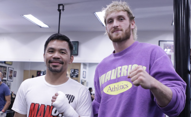 ローガンポール(右)もパッキャオの練習を視察(パッキャオのyoutubeサムネイルより)