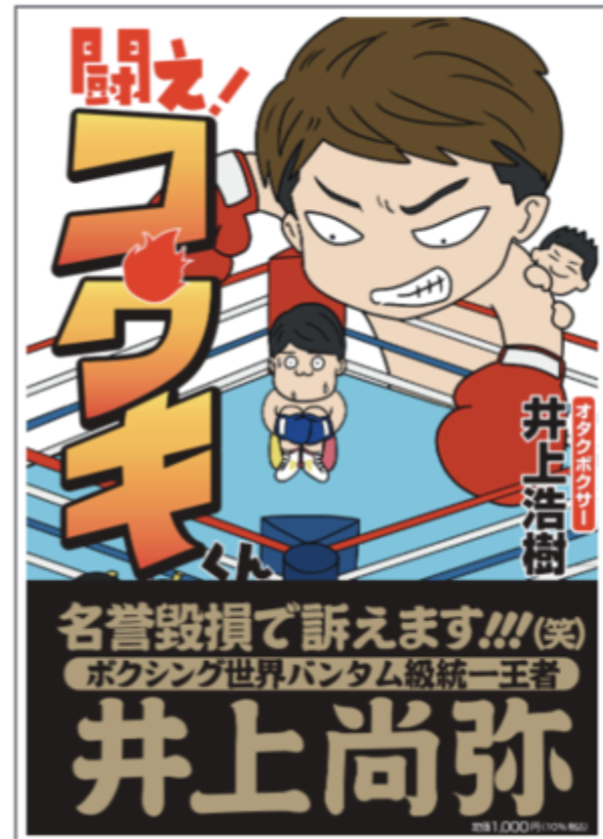 ☆前のページ:井上尚弥のゆるキャラなイラストと「名誉毀損で訴える」と帯に書かれた表紙など