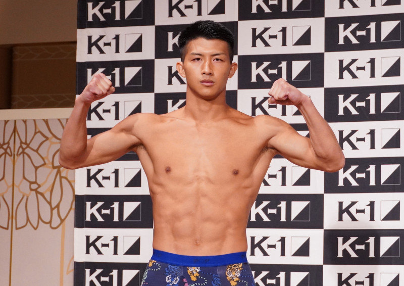 計量パスしマッスルポーズを見せる挑戦者・朝久
