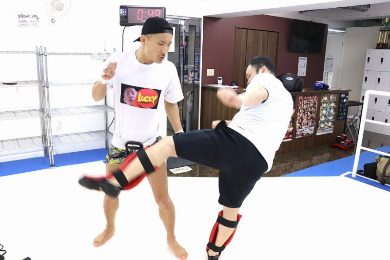 トレーナーに金的を蹴ってもらう堀井(C)K-1