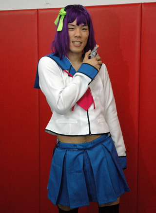 公開練習でコスプレ姿を披露する長島(2010年3月)