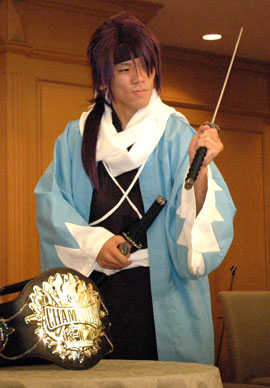 コスプレで会見に出席した長島(2010年11月)