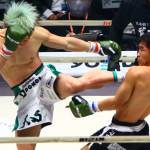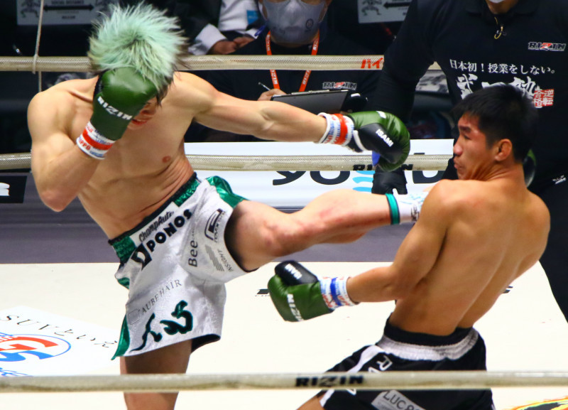 昨年の大晦日、天心がムエタイ強豪クマンドーイにジャンピングハイキック!