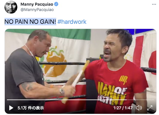棒で叩かれ苦悶の表情のパッキャオ(パッキャオ Twitterより)