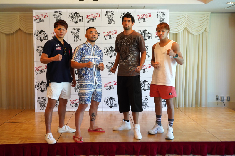 左から、渡慶次のセコンド鈴木千裕(KNOCK OUT王者)、渡慶次、ジョナタンのセコンド平良達郎(修斗王者)、ジョナタン©FOS
