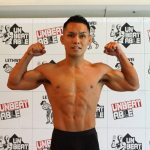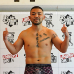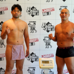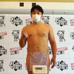 東も計量パス、明日の試合で「やりたいことは変わらず頭突き。頭突きの面白さを伝えたい」と話した©FOS
