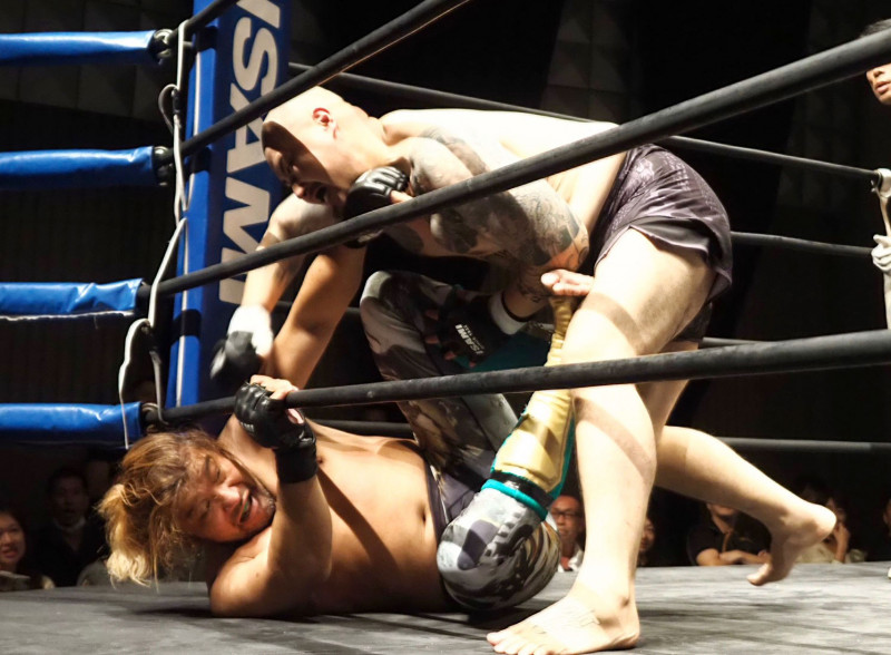 前回MMAで対戦した内田(下)と中村(2019年10月)