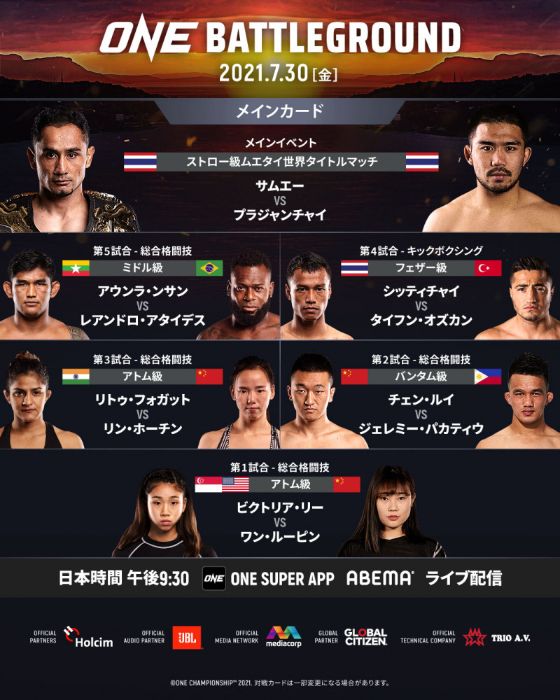 7月30日『ONE: BATTLEGROUND 』の対戦カード©️ONE