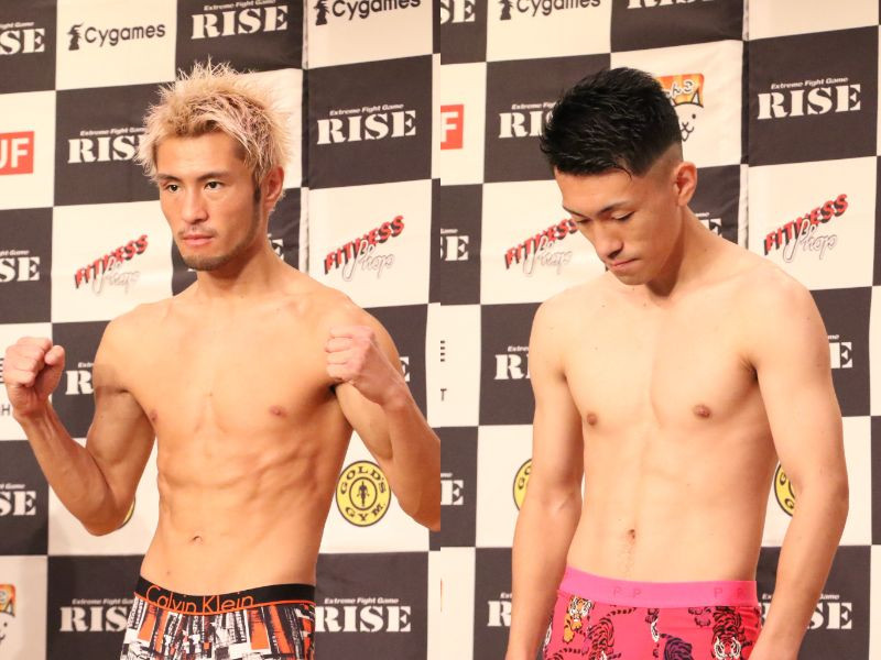 王者・工藤(左)と挑戦者・竹内(右)が共にフェザー級のリミットをパス
