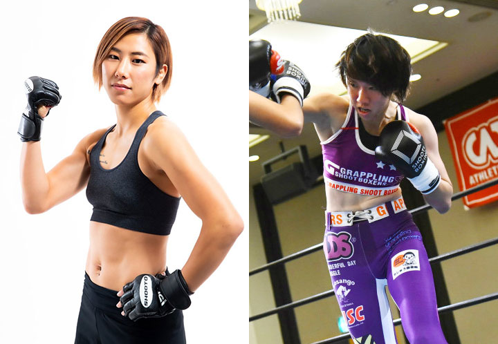 杉本恵(左/(C)SUSTAIN/SUSUMU NAGAO)とユリカ・グラップリングシュートボクサーズ(右/(C)SHOOT BOXING)