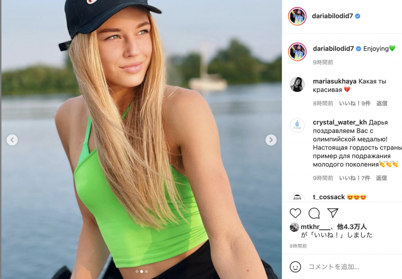 浜辺でヘソ出し&ショートパンツのビロディド(@dariabilodid7)
