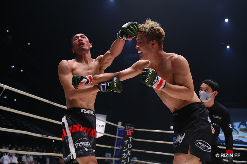 関が強烈な右ストレートを放つ
