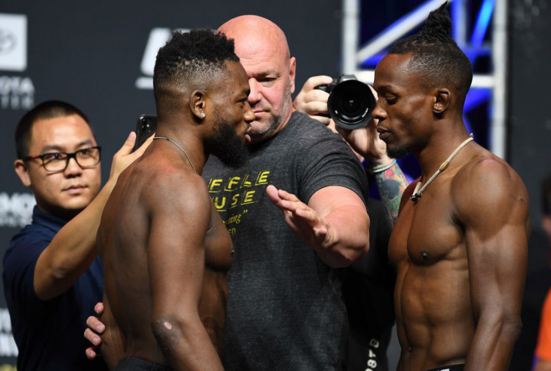 計量失敗も、フェイスオフではいつもの様に相手を挑発するケイプ(左)(©Getty Images/UFC)