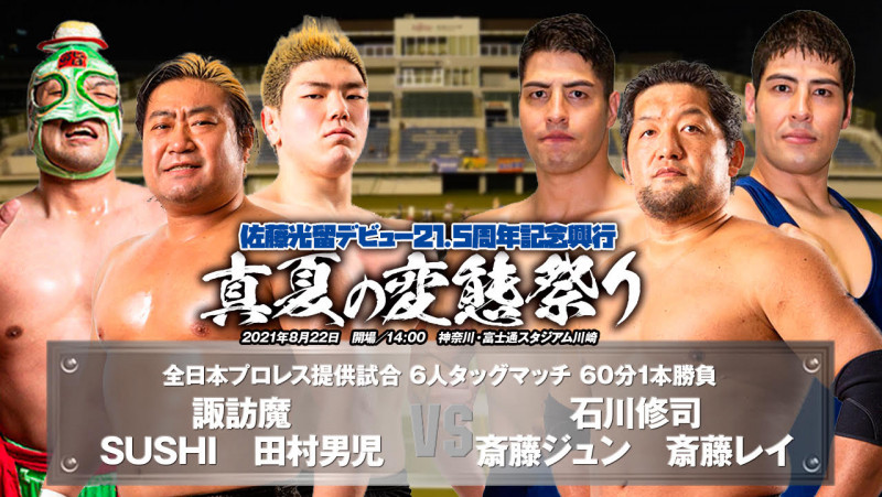 「全日本プロレス提供試合 6人タッグマッチ 60分1本勝負」右側両サイドが大相撲出身・双子プロレスラーの斎藤兄弟