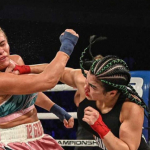前戦の素手ボクシング第2戦目で、オストビッチ(右)の強烈な右を被弾し、2連敗のヴァンザント(左)@rachaelostovichより
