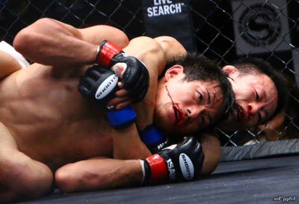 岡田遼からスリーパーで一本勝ちした石橋