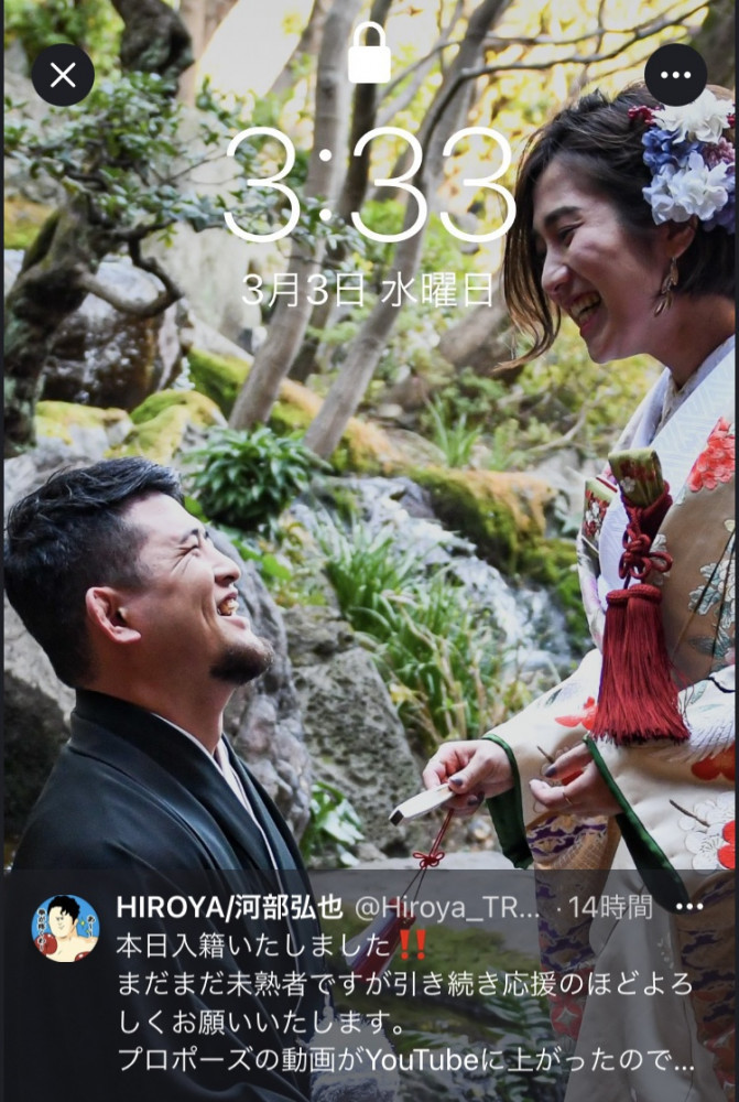美しい和装姿の彼女にプロポーズを行うHIROYA @Hiroya_TRYHARDより