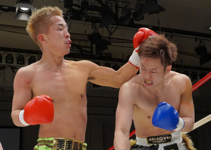 左フックを当てる小嶋