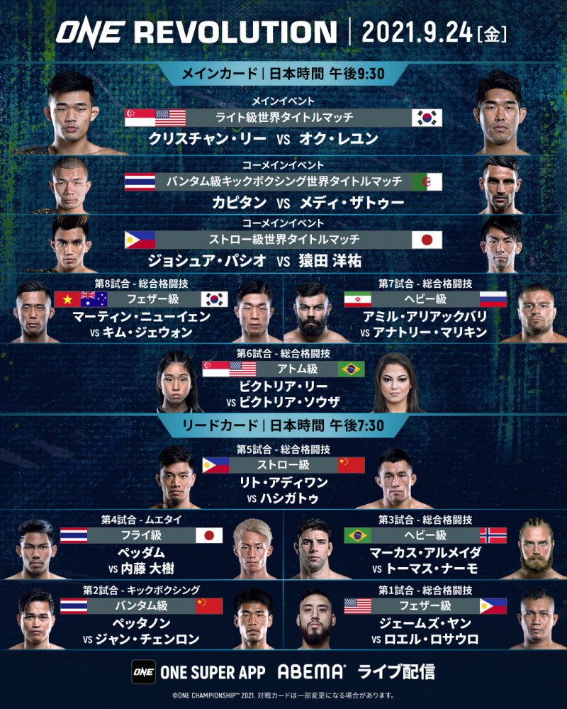 9.24大会は、3大タイトル戦と豪華カードが並ぶ©️ONE