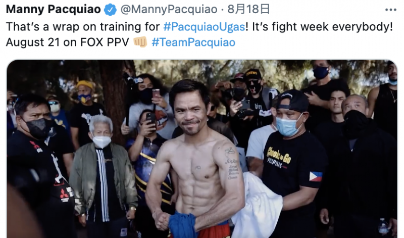 パッキャオがバキバキに仕上がったボディを披露(パッキャオTwitterより)
