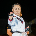 空手着姿で入場する山口
