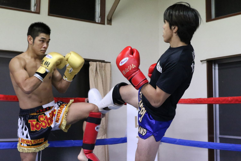 スパーリングを行う谷山と山際 (C)K-1