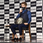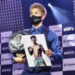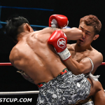 原口の右フックが相手を捉え崩れ落ちる瞬間