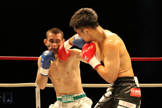 林(右)の強烈なパンチにトファネリの顔が歪む