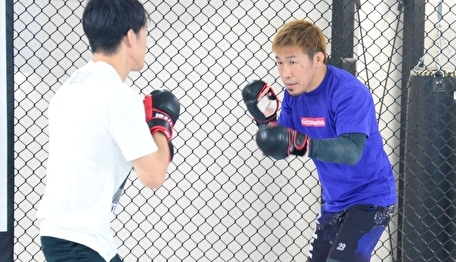 朝倉海(左)とスパーリングする昇侍