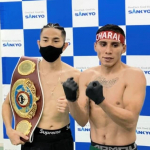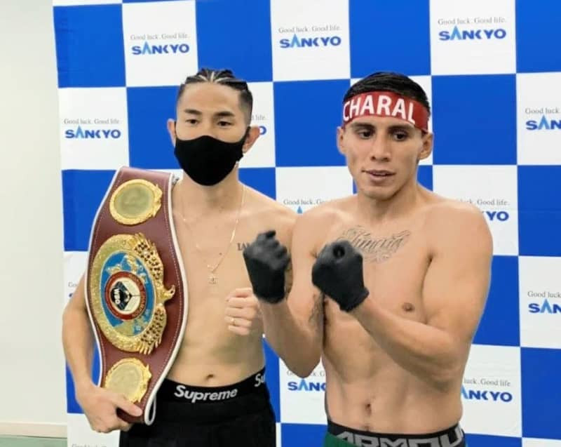 計量をパスした井岡一翔(左)とフランシスコ・ロドリゲス(志成ジム提供)