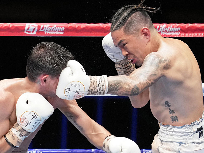 井岡の左フックがロドリゲスの顔面を直撃する(Photo:Naoki Fukuda)