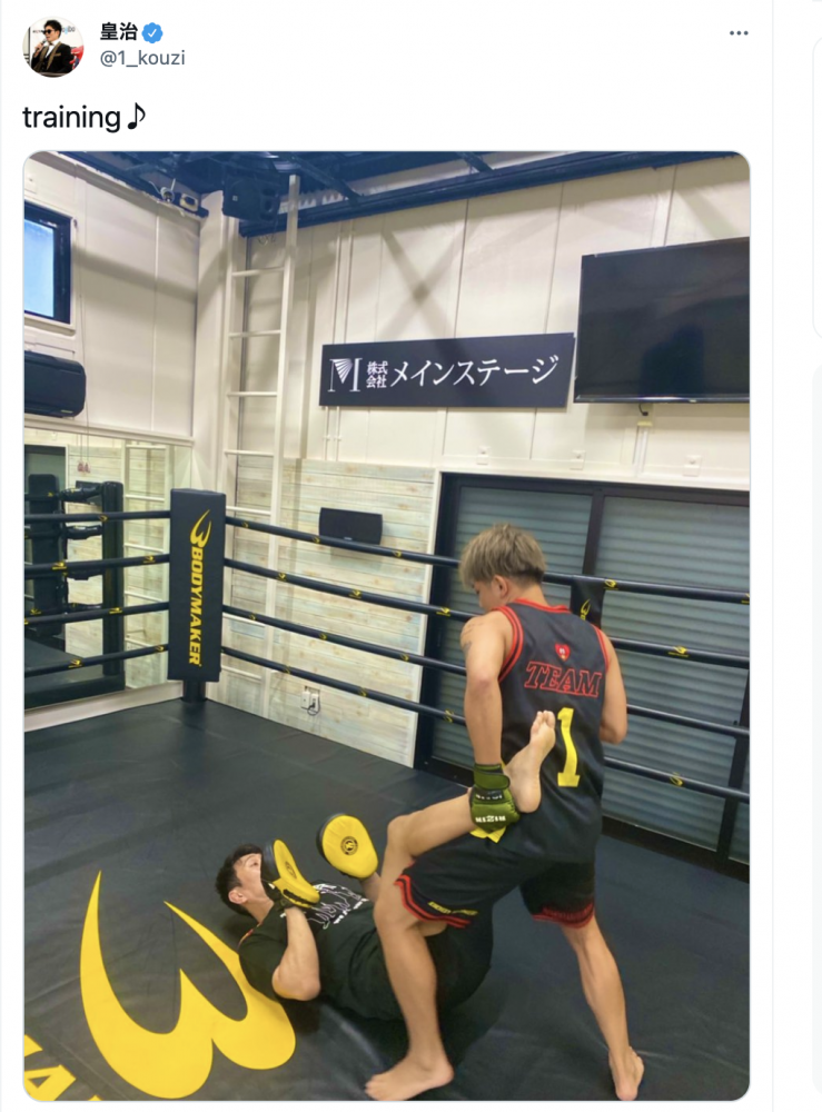 皇治がRIZINオープンフィンガーグローブでパウンドの練習をする写真(皇治Twitterより)