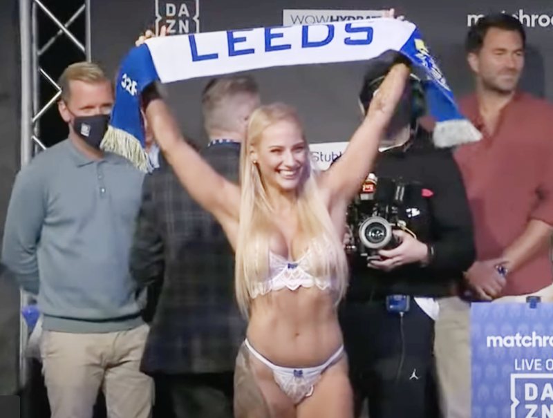 ランジェリー姿で計量したブリッジス(c)DAZN