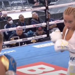 試合では一転闘争心を出す。圧力をかけ相手を追いめるブリッジス(C)DAZN