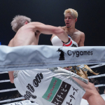 サンドバッグを蹴り込む原口©️RISE