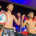 中谷(左)とアコスタが計量パス(提供:MTジム)