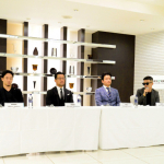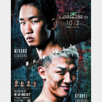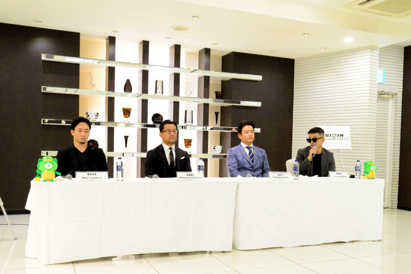 対戦カード発表会見でサングラス姿の萩原(右)が朝倉(左)を挑発