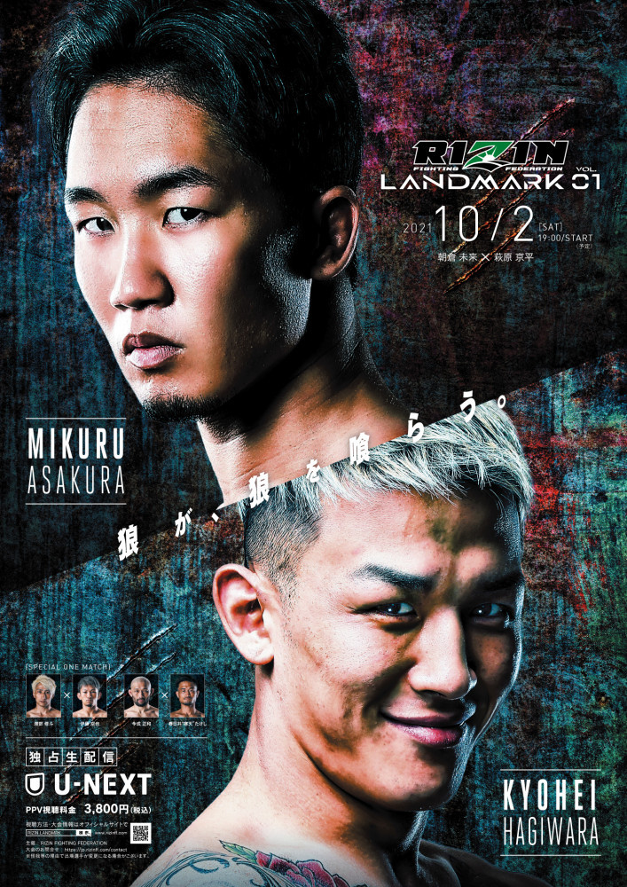 『RIZIN LANDMARK vol.1』ポスター、朝倉未来(上)と萩原京平(下)がフィーチャーされている