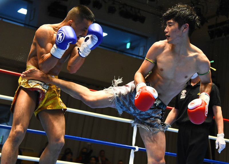 ムエタイをベースに多彩な技術を持つ大田の右バックスピンキック