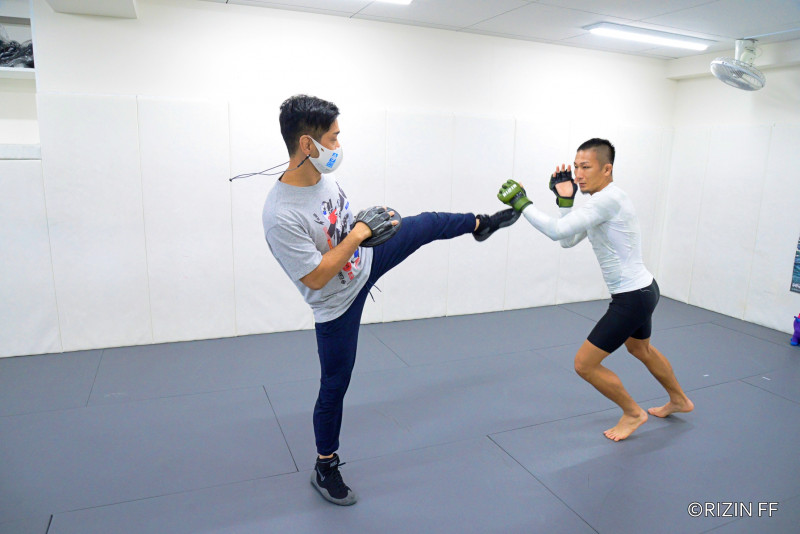 石渡伸太郎(左)が元谷の公開練習のパートナーを務めた