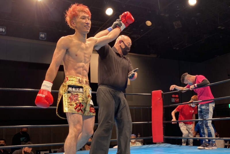 今月5日の『九州プロキックボクシング』で栗秋祥梧をKOして、勝ち名乗りを受ける銀次