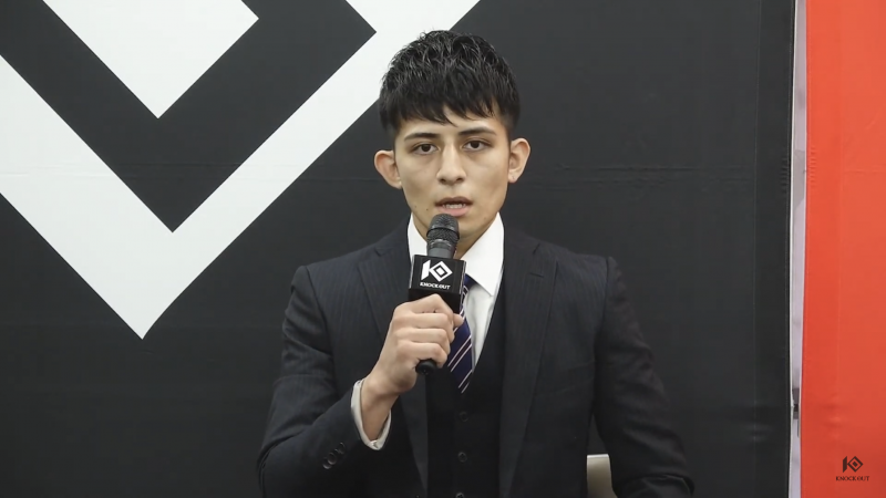 会見で転向報告をする鈴木 KNOCK OUT YouTubeチャンネル