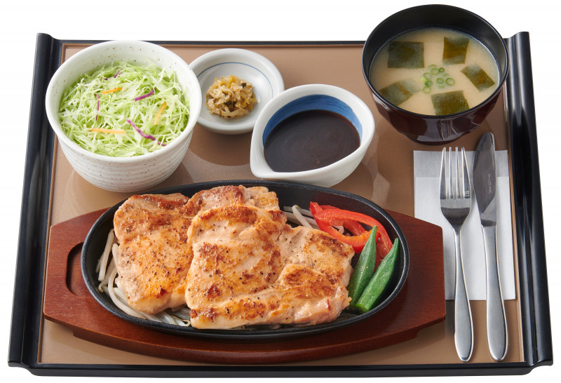 W・筋肉定食【皮なし鶏もも肉のステーキ2枚】(にんにく醤油orぽん酢) 1,290円(税込)