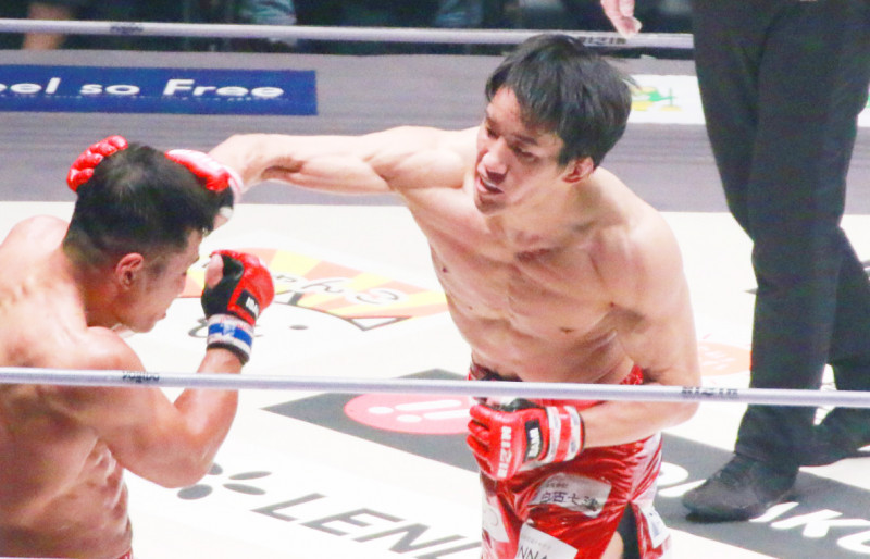 強烈な右のパンチを振るう朝倉、実は右手を負傷していた