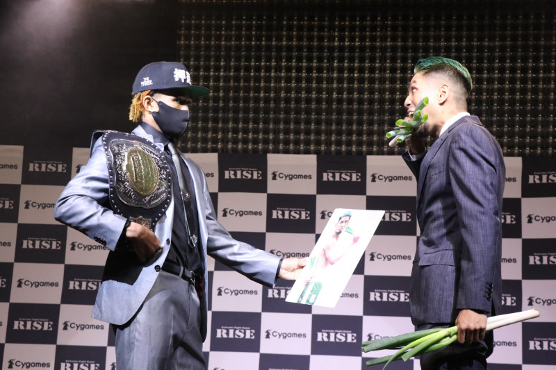 怒り心頭のベイノア(左)と、会見をジャックした初参戦のねぎ魔神(右)