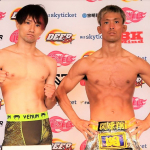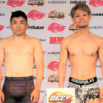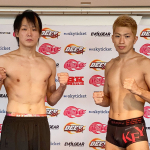フライ級暫定王者の藤田大和(左)と挑戦者の伊藤裕樹