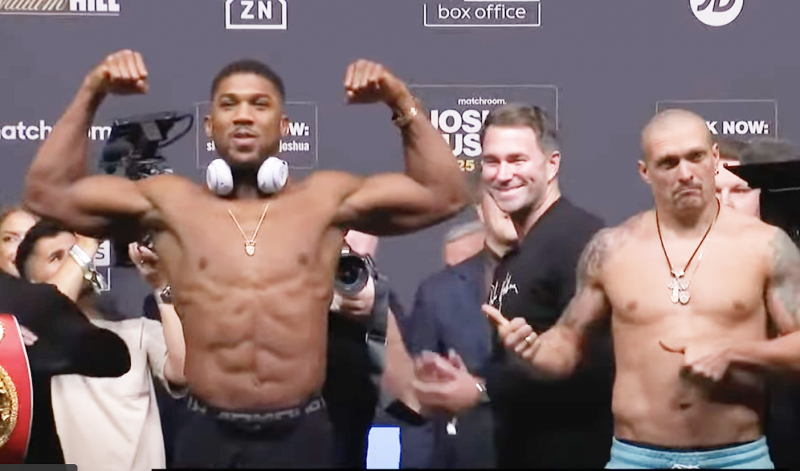 バキバキのジョシュアのボディをウシクが称える(c)DAZN